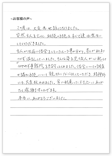 突然主人を亡くし、相続の手続をすべて速水先生にしていただきました。