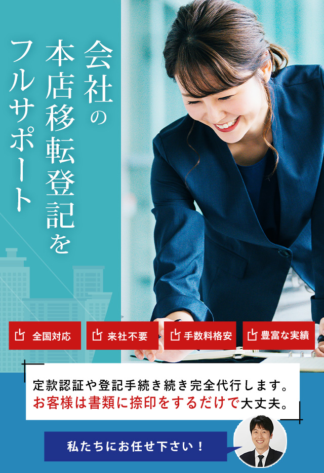 - 法務局での本店移転登記申請を任せることができる