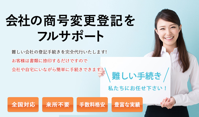 当事務所では、リーズナブルな料金で会社の商号変更手続きをお手伝いさせていただいており全国から多数のご依頼をいただいております。