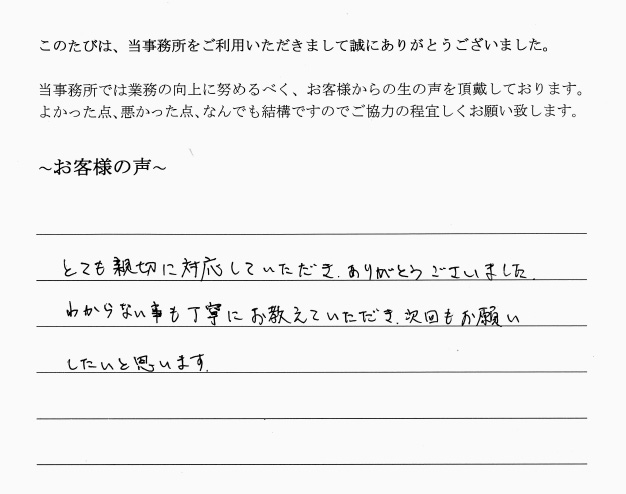わからない事も丁寧に教えていただき、次回もお願いしたいと思います。