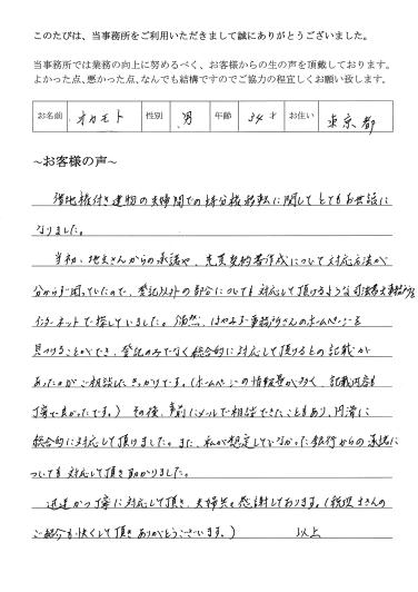 当初、地主さんからの承諾や、売買契約書作成について対応方法が分からず困っていたので、登記以外の部分についても対応して頂けるような司法書士事務所をインターネットで探していました。